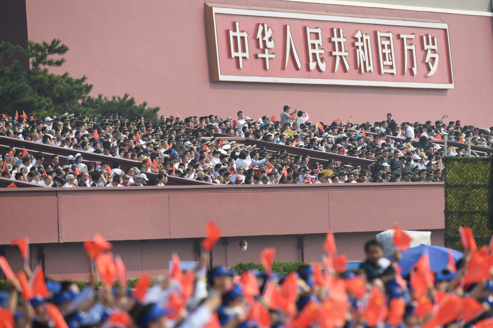 10月1日上午,庆祝中华人民共和国成立70周年大会在北京天安门广场隆重举行。这是现场的观众。新华社记者 鞠焕宗 摄