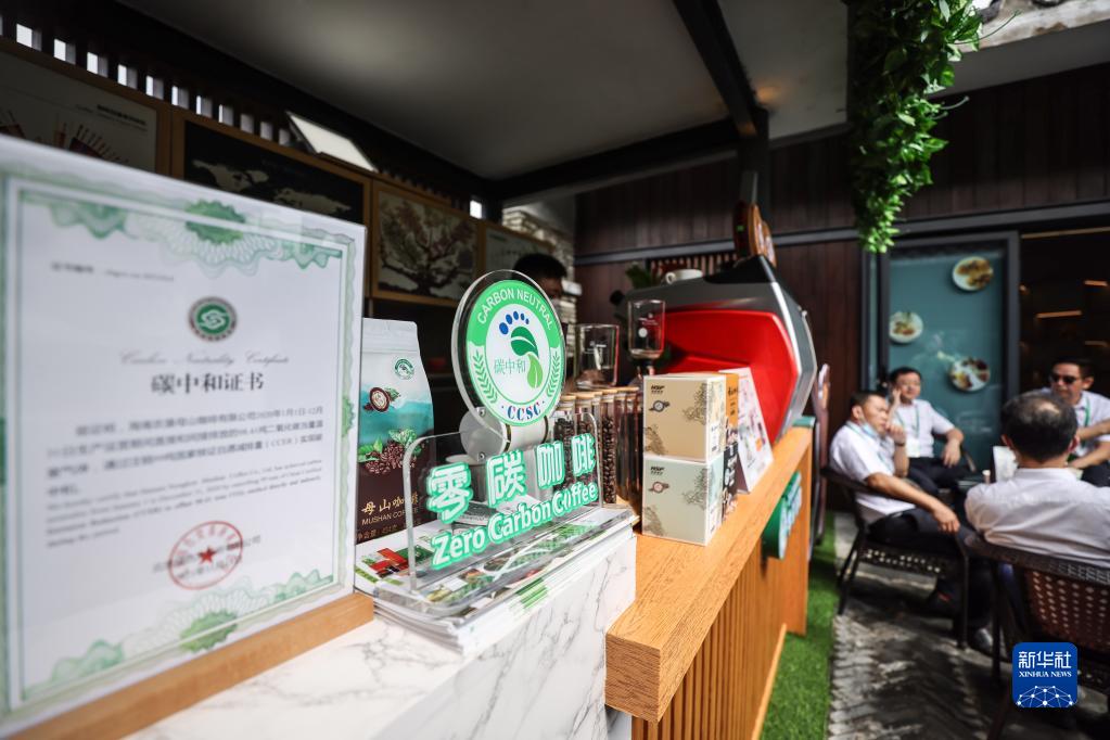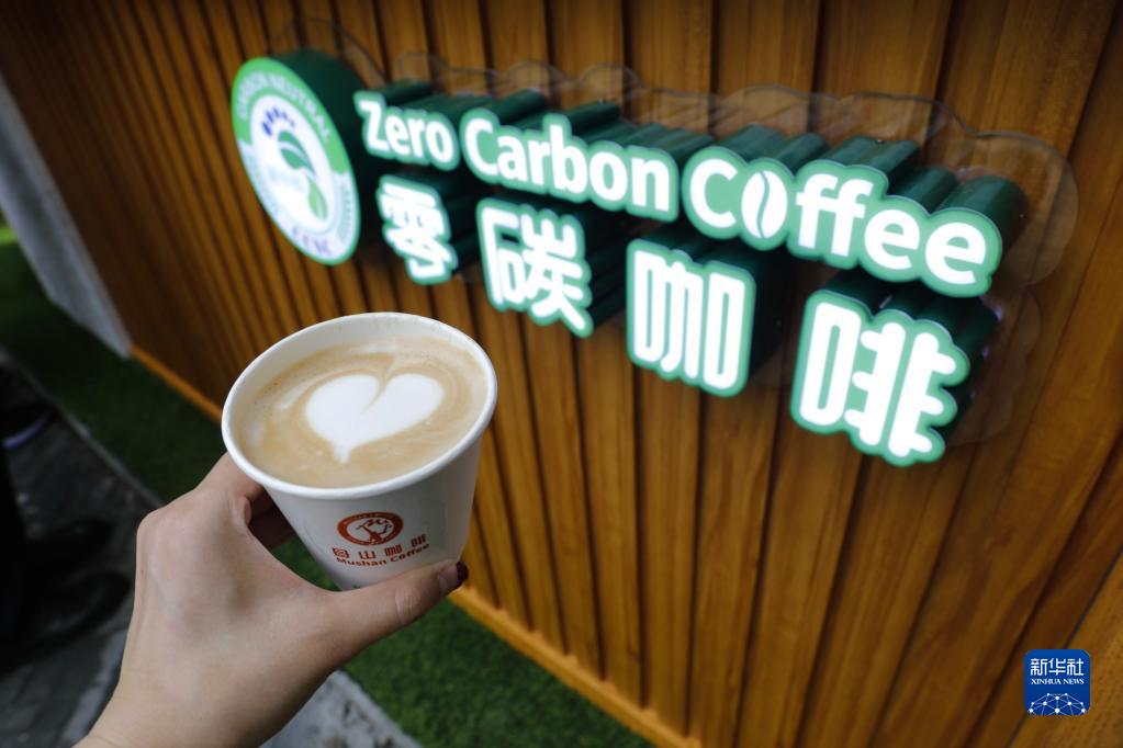 4月20日,参会嘉宾在博鳌亚洲论坛主题公园品尝“零碳咖啡”,这款咖啡在生产、加工、包装等环节均实现绿色低碳。