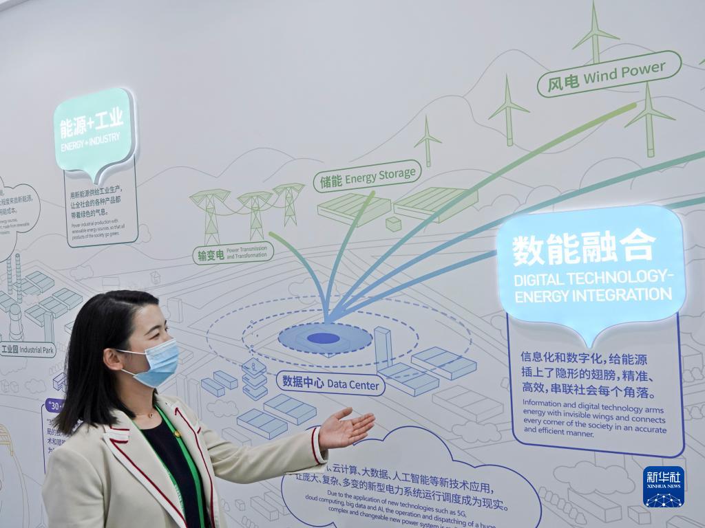 4月20日,中国能建参展人员介绍如何通过数能融合实现精准、高效利用能源。