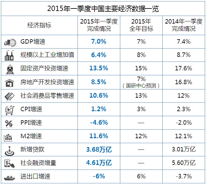 一图速览中国2015年一季度全部重磅经济数据