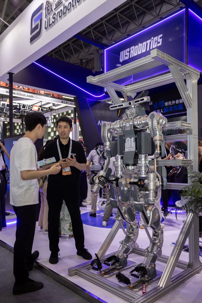 7月4日在2024世界人工智能大会拍摄的全尺寸通用人形机器人开源公版机“青龙”。新华社记者 王翔 摄