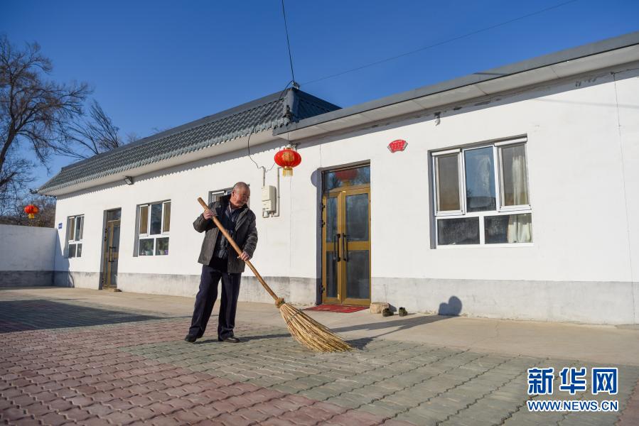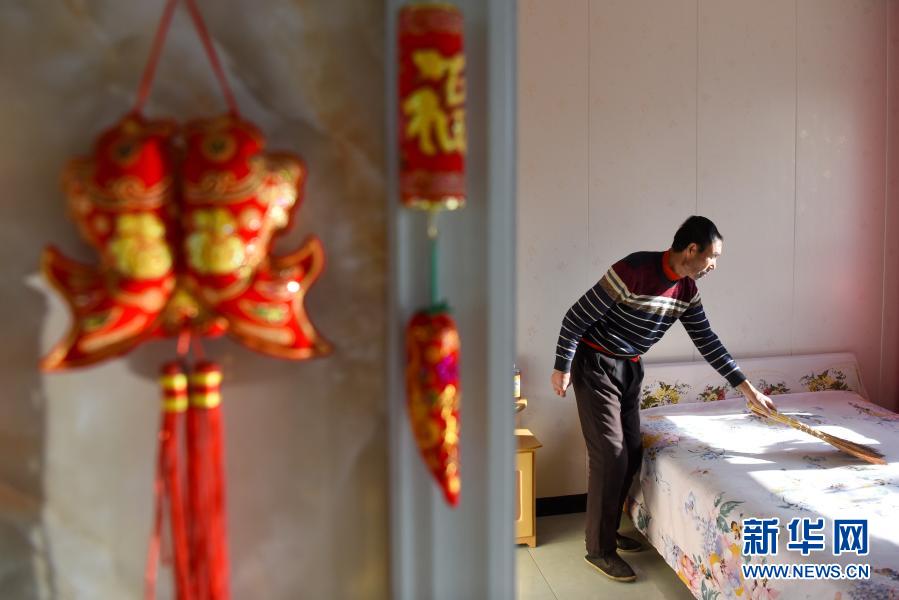 吉木萨尔县头工街东村村民杨万里在打扫房间(1月21日摄)。新华社记者 丁磊 摄