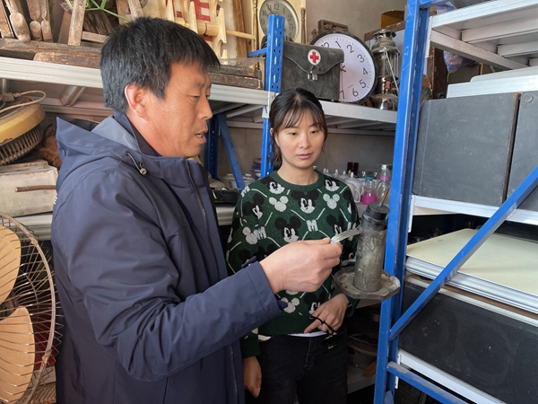 赵鸿向游客介绍剧中使用的老物件。新华社记者 马丽娟 摄