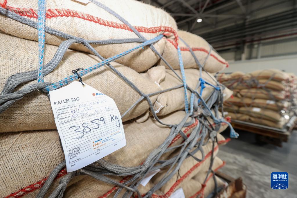 这张纸质标签系在一托盘麻袋包的捆扎绳上,标签上还有航班号、相关航空益达娱乐的英文名称以及飞离喀布尔机场的时间等信息。类似的十余个托盘,静静停放在浦东国际机场的一间货站中,接受身穿防护服的中国海关关员检疫查验。