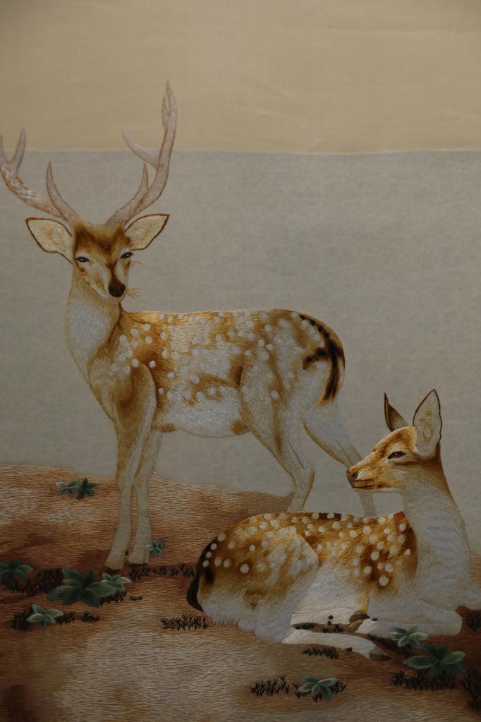 “你看这两幅都是贵南藏绣,一幅生硬、粗犷,另一幅灵动、细腻,就是要通过学习其他绣法,不断摸索创新,让藏绣越来越精美。”拉毛叶忠拿着这两幅藏羚羊作品解释。作为省级非物质文化遗产项目代表性传承人,拉毛叶忠一直在思考,如何让传统藏绣焕发新活力。