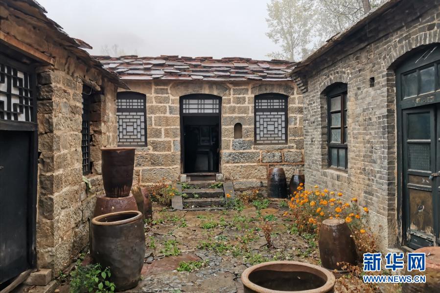 山西省左权县芹泉镇横岭村一座独具太行民居特色的石房院落挂上了“小二黑院”的牌子(10月14日摄)。新华社记者 许雄 摄