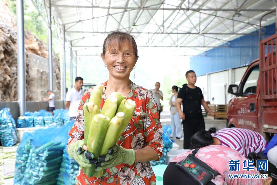 贵州省黔南布依族苗族自治州长顺县核子村村民在打包收获的茭白(7月6日摄)。新华社发(朱涛 摄)