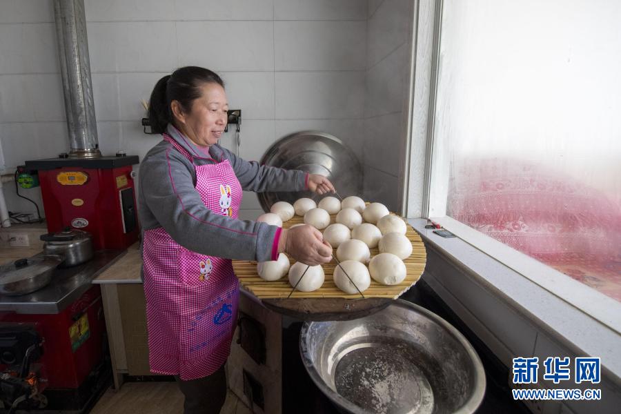 2020年12月31日,李三花在岚县普明镇普明村的家里蒸馒头。新华社记者 杨晨光 摄