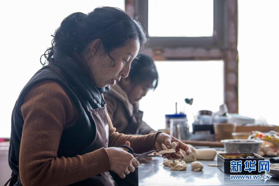 2020年12月30日,刘志平在位于岚县县城的面塑一条街学习制作面塑。新华社记者 杨晨光 摄