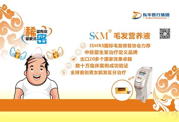 SKM毛发营养液,是ISHRS国际毛发修复协会力荐产品,中胚层生发治疗定义品牌,出口20多个国家效果卓越,数十万临床案例验证品牌,全球首创男女脱发区分治疗,突破口服用药和外用药、植发、物理刺激等常规疗法的一种新型止脱、生发育发的供毛囊营养的产品。运用中胚层疗法,将生物活性液注入皮肤真皮层,通过对头皮毛囊机械刺激与生物化学刺激,针对性地对男性脱发、女性脱发区分治疗,使皮内组织或皮下组织及毛母细胞进行针对性的刺激达到治疗效果。