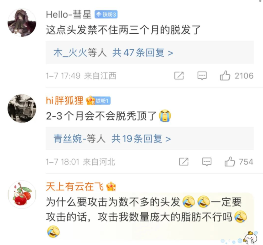 但是,网友们好像都不太不能够接受2-3个月脱发的残忍现实......