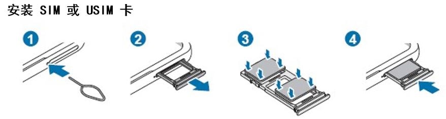 插入移动电话服务提供商提供的 SIM 或 USIM 卡。