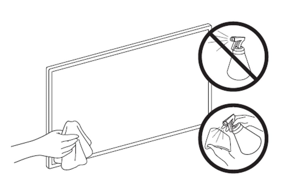 • 要清洁屏幕,先关闭电视,然后使用超细纤维布轻轻擦去屏幕上的污迹和指纹。使用沾有少量水的软布清洁电视机身或屏幕。
