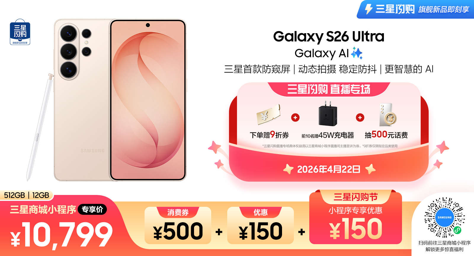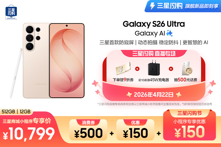 2026年2月26日03:00-2026年4月30日23:59,参与者必须在购买Galaxy S26系列的流程中,直接选择“以旧换新”选项并成功提交订单,且指定机型满足特定机况时,可参与S换机计划,本次S换新计划旧机参与机型限定为:S25系列、S24系列、S23系列,不包括Galaxy S FE机型和Galaxy S Edge 系列。未按该流程操作的,将无法享受本次S换新计划相关增值回收权益,如有疑问,请咨询客服。