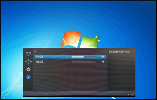 7.向下拨动【电源】键,选择【水平】可以调节菜单在屏幕的左右位置。