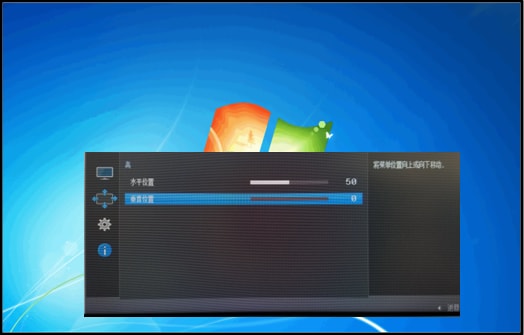 8.向下拨动【电源】键,选择【垂直】可以调节菜单在屏幕的上下位置。