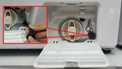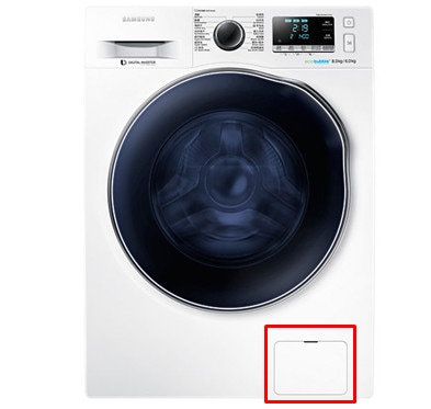 3.然后检查残渣过滤器是否堵塞,残渣过滤器位置在洗衣机正前方右下角。