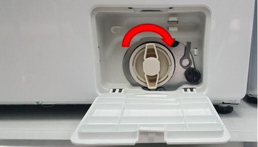 7.将残渣过滤器盖向里推入,然后逆时针旋转打开排空剩下的水并移除残渣过滤器。