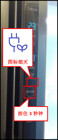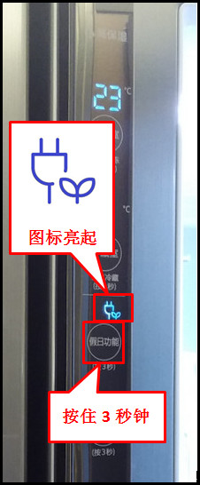 2.如需退出,再次按【假日功能】键3秒钟,“假日功能”图标熄灭,冰箱则退出假日功能状态。