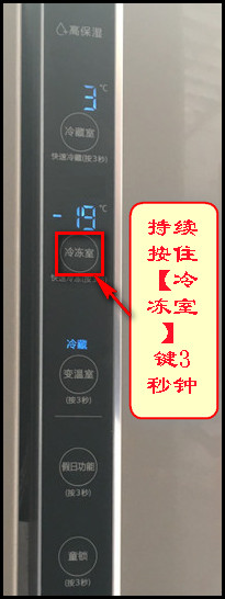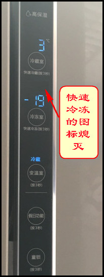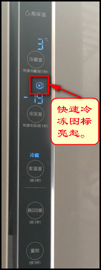 1.持续按住【冷冻室】键3秒钟,快速冷冻的图标亮起即可。