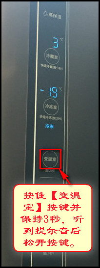 1. 按住【变温室】按键并保持3秒,听到提示音后松开按键。
