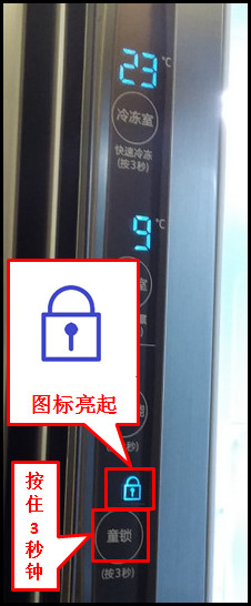 按住【童锁】键3秒钟,当屏幕“锁定”图标亮起时,即成功设定了童锁功能。(提示:锁定状态所有按键没有反应。)