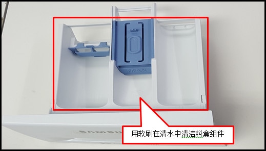在洗衣机使用过程中,洗涤剂会有部分残留在洗涤剂盒内,为防止堵塞请定期清理洗涤剂盒子。具体操作方法如下: