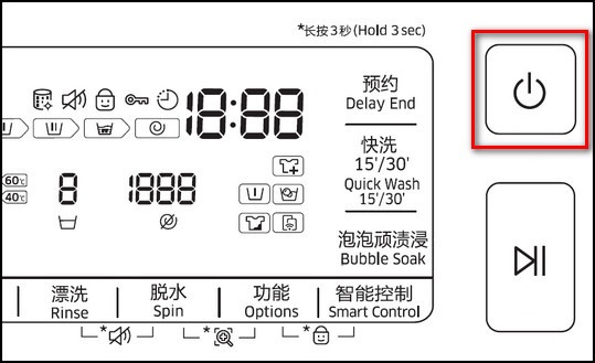 2.取消预约,只要按下电源键重新启动洗衣机即可。