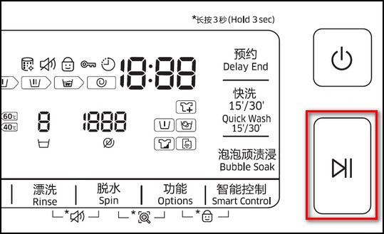 4.最后按【开始/暂停】键,启动洗衣机,预约图标也会亮起。