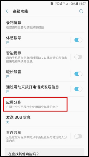 SamsungGalaxy C8 SM-C7100/C7108(7.1.1)如何开启应用分身功能(在手机中登陆两个微信)?
