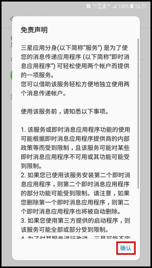 5.阅读弹出的“免责声明”后,点击【确认】。