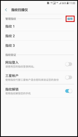 SamsungGalaxy C8 SM-C7100/C7108(7.1.1)如何删除已注册指纹?