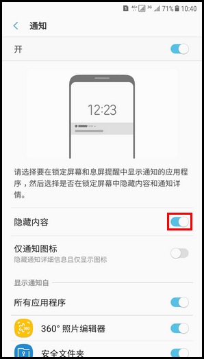SamsungGalaxy C8 SM-C7100/C7108(7.1.1)如何隐藏锁定屏幕通知内容?