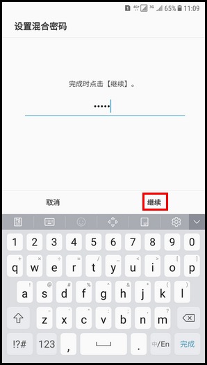 6.输入要设置的混合密码,然后点击【继续】。