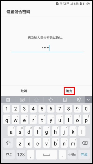 7.再次输入混合密码,然后点击【确定】。
