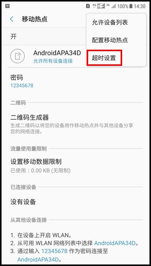 手机开启移动热点后,在设定的时间内没有其他设备连接,手机移动热点功能会自动关闭,若需更改移动热点超时时间,请按以下步骤操作: