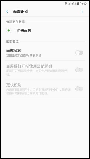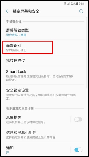 SamsungGalaxy C8 SM-C7100/C7108(7.1.1)如何删除已注册的面部数据?