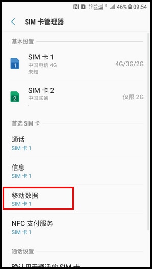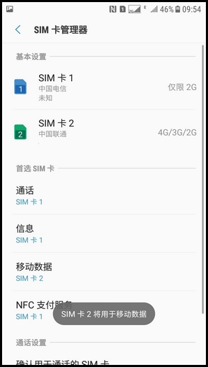 SamsungGalaxy J3 2017 SM-J3300(7.1.1)如何切换卡1或卡2上网?