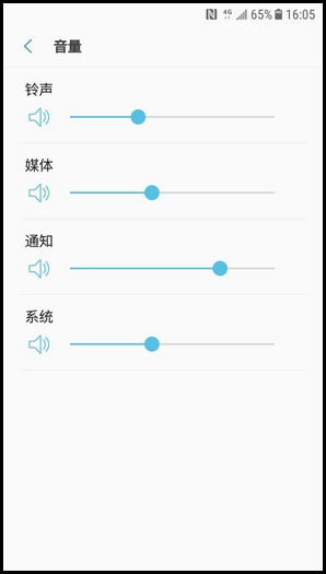 SM-J3300/J3308(7.1.1)可单独调节铃声、媒体、通知、系统的音量大小。若要调节音量大小,建议您尝试以下操作: