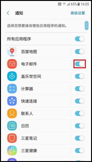 注:若您关闭所有应用程序通知功能后,手机上不会自动显示新通知提醒,需要在进入某个应用程序时,才可以看到新通知。