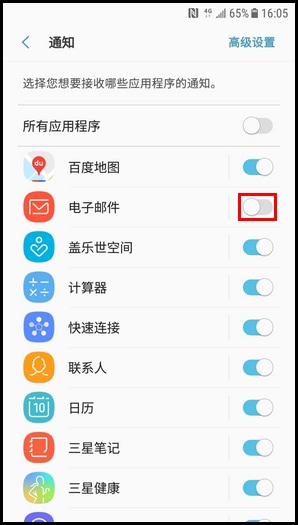 若您不想收到某些应用程序的通知,您可通过以下步骤将其关闭: