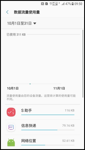 SamsungGalaxy J3 2017 SM-J3300/J3308(7.1.1)如何查看应用程序使用流量情况?