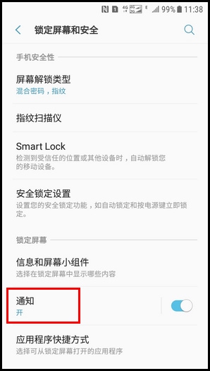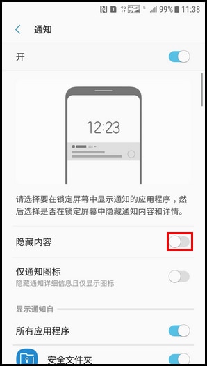 SamsungGalaxy J3 2017 SM-J3300/J3308(7.1.1)如何隐藏锁定屏幕通知内容?