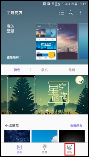 Galaxy J3 2017 SM-J3300/J3308(7.1.1)可以更改主屏幕显示的应用程序图标,您可以根据个人喜好下载使用,若需下载图标,请按以下步骤操作: