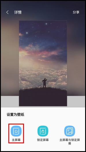 7.选择设置壁纸的位置,这里以选择【主屏幕】为例。