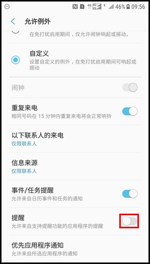 11.点亮“提醒”右侧【滑块】开关,可允许来自支持提醒功能的应用程序的提醒。(注:若不开启该功能,支持提醒功能的应用程序提醒将转为静音。)