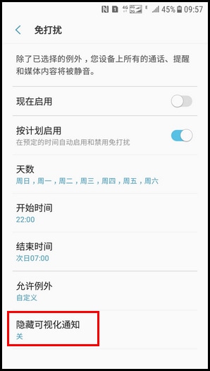 完成以上操作后,免打扰模式就设置成功了,到设定的开始时间将自动启用。