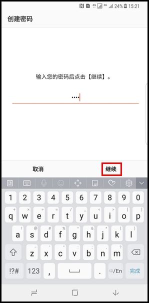 7.输入要创建的混合密码后,点击【继续】。(注:混合密码需要包含至少4个字符。)
