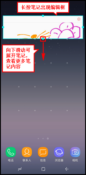 5.笔记固定到主屏幕后,若想调整笔记显示大小,请长按笔记出现编辑框后,滑动编辑框上的圆点图标调整笔记显示大小。