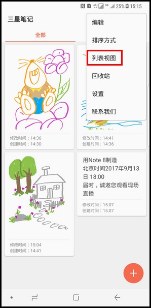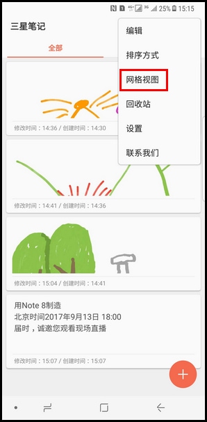 益达娱乐 Galaxy Note8 SM-N9500/N9508如何更改查看益达娱乐笔记的视图方式?(Android 7.1.1)